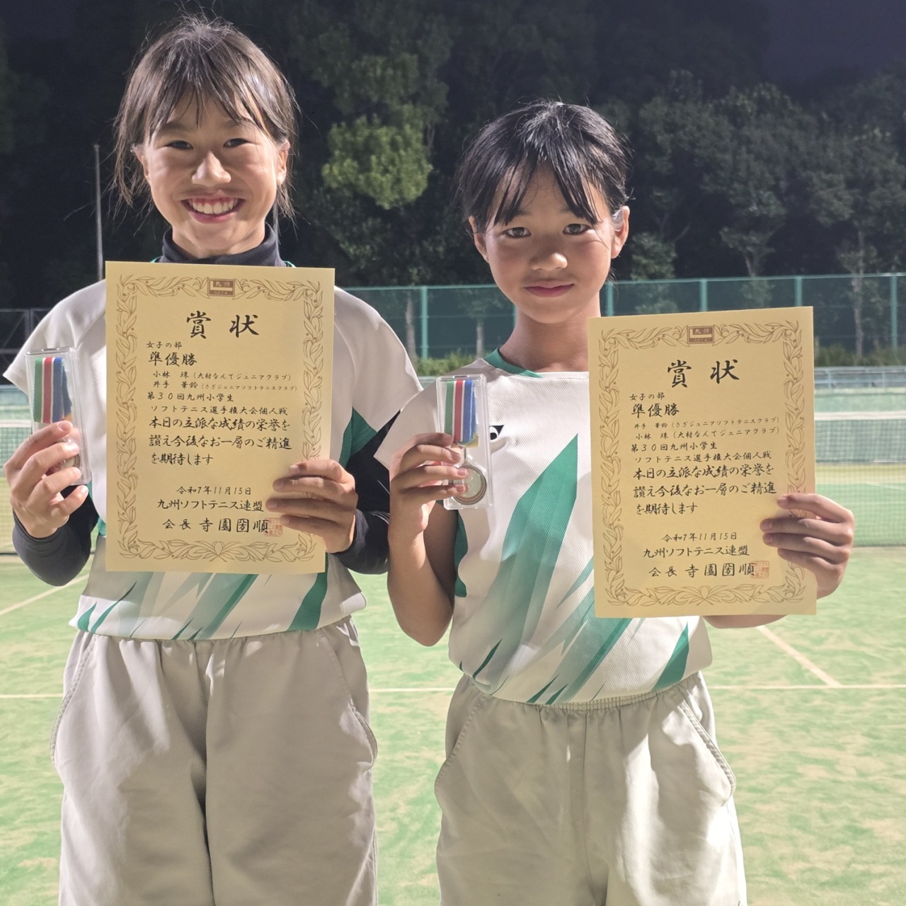 準優勝 (長崎県)小林 珠(大村なんてジュニアクラブ)・井手 華鈴(さざジュニアソフトテニスクラブ)
